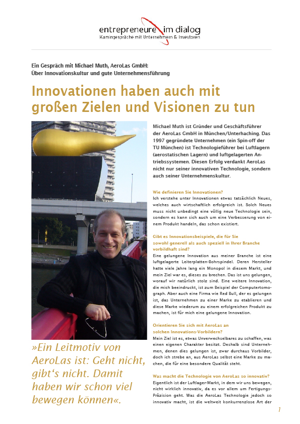 4-seitige Interviews und Porträts (Text und Layout) mit den Gesprächspartnern aus den